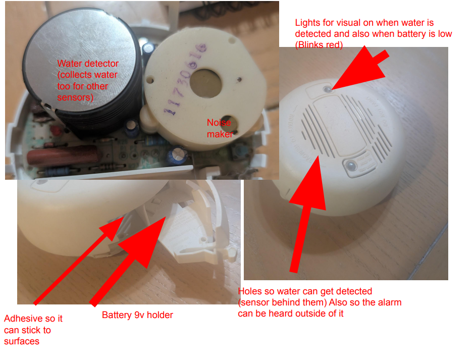 Third Choice – Concept 3: Plastic, 9 volt battery pack, moisture sensor, Fire alarm-style lights, Adhesive, common parts, non-conductive touch points, Intuitive battery replacement, Non-polar case coat.
